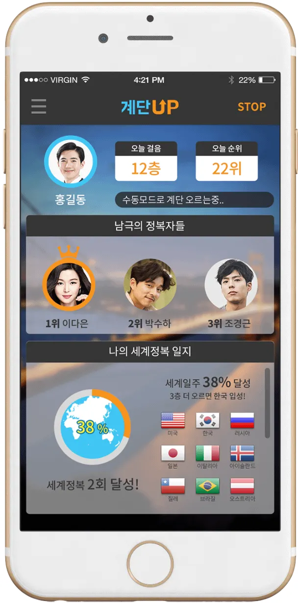 계단업(StairUp)은 블루투스 기반 IoT 기술을 활용한 생활밀착형 건강관리 어플리케이션입니다.