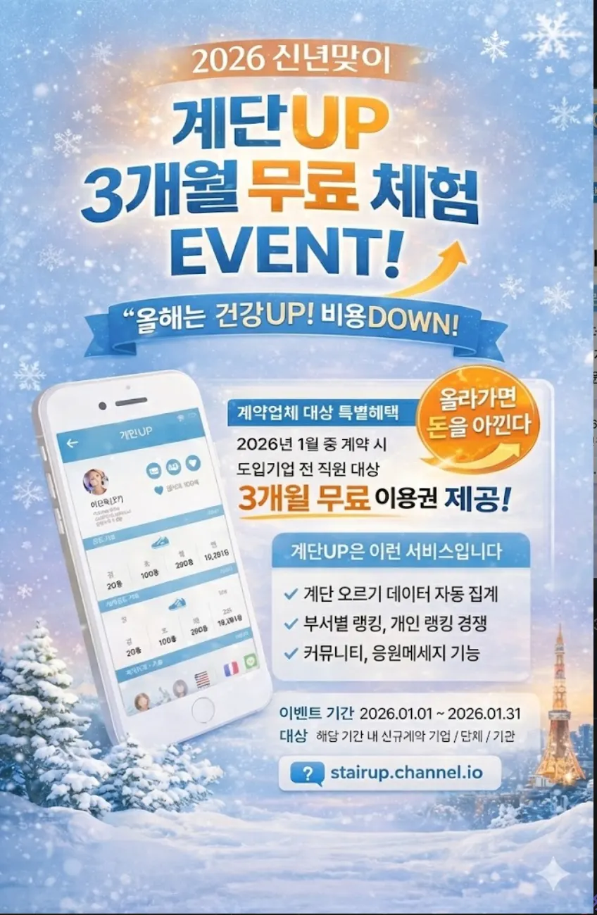 계단업 3개월 무료 체험 이벤트 ( 기간 1월내 계약 고객 )